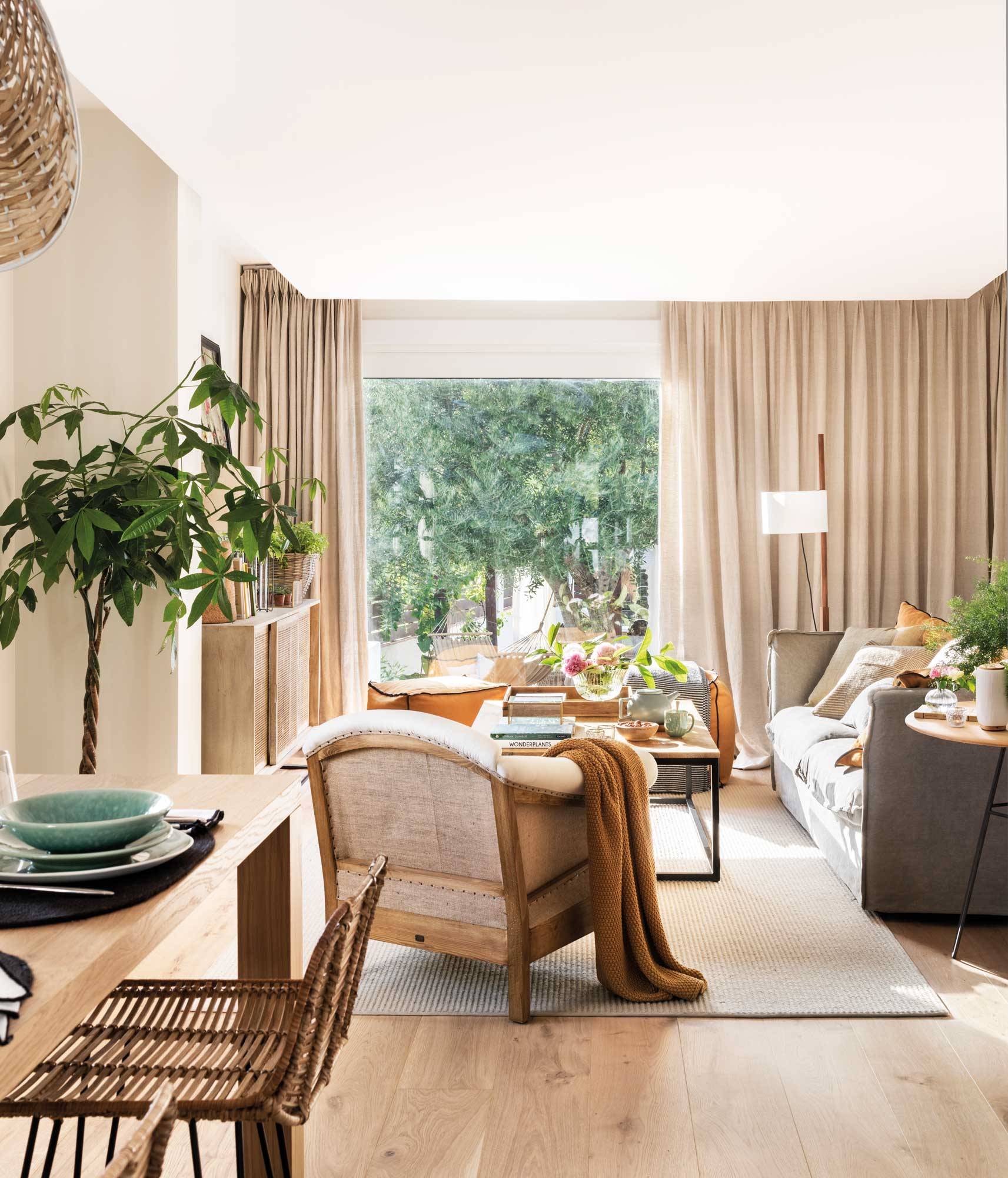 Las cortinas abundantes o dobles son una tendencia que busca darle un toque sofisticado al hogar y más protagonismo a la decoración a partir de otro tipo de elementos. La clave para adaptar esta tendencia, consiste en buscar el mayor volumen posible y un tono neutro que ayude a compensar el espesor o la textura de la cortina.